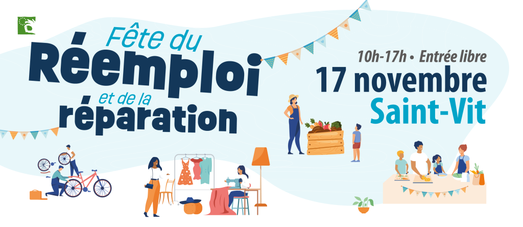 Cet événement gratuit aura lieu à la salle des fêtes de Saint-Vit dans une ambiance conviviale. Toute la famille est conviée à venir découvrir des acteurs locaux de la seconde main, de la réparation et de la réduction des déchets. L’occasion de faire le plein d’astuces et de conseils pour consommer autrement, pour faire un geste pour la planète comme pour son porte-monnaie.