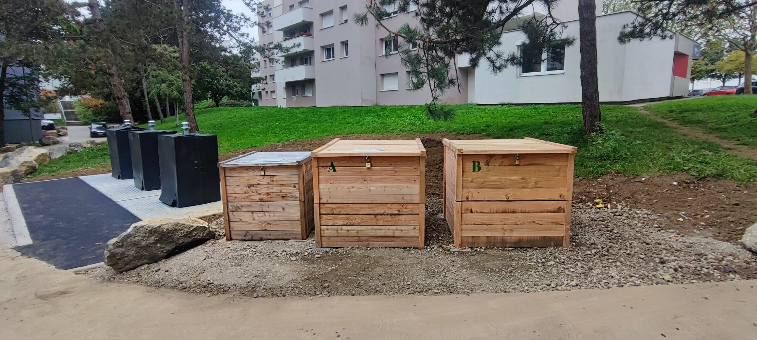 Les composteurs collectifs sont destinés aux habitants de logements collectifs sans jardin ou espaces verts ainsi qu’aux habitants ne disposant d’aucune autre solution de compostage.