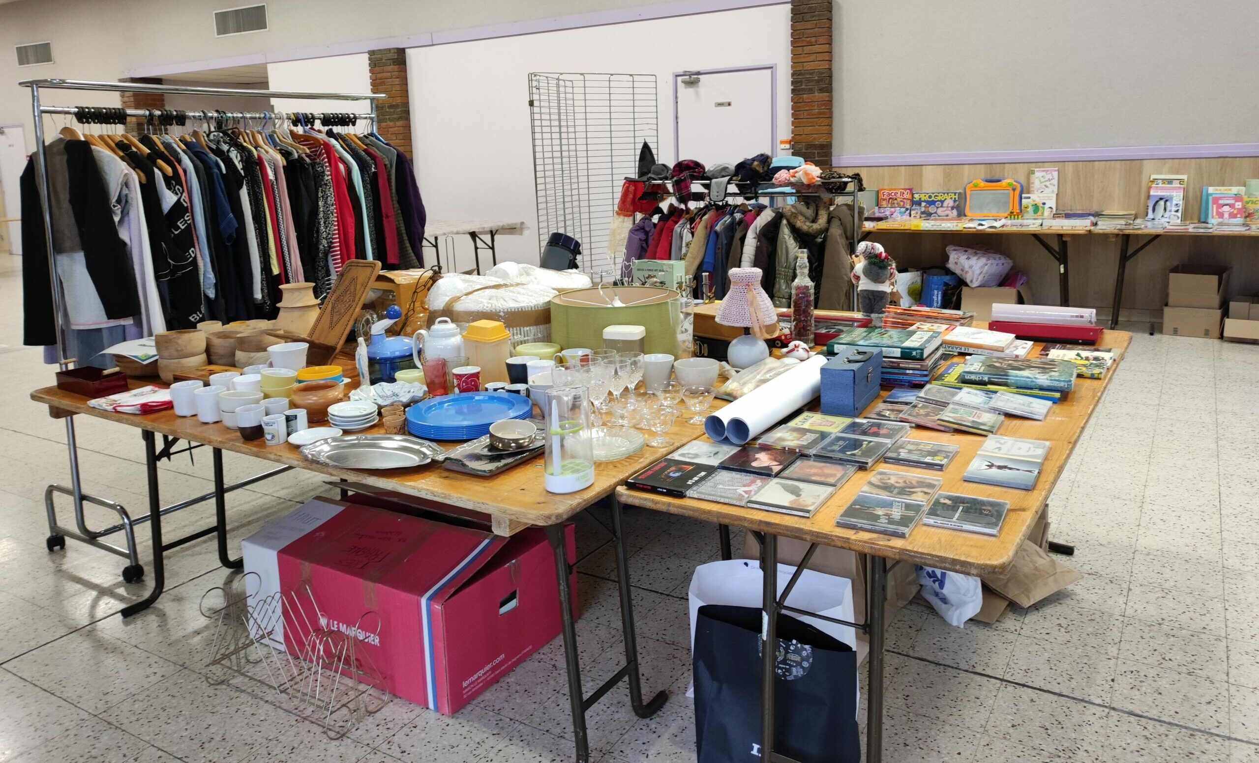 Sont acceptés : jouets, livres, jeux, vaisselle, décoration, bijoux, petits électroménagers et appareils électroniques, petits meubles, vêtements, tissus, sacs, outils…